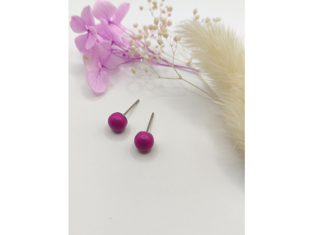 Drobné pecičky fuchsiové (růžovo fialovo vínová) barvy, které můžete použít jako "hlavní" náušnice, nebo pokud máte druhou/třetí/,.. dírku tak do ní. Doladíte tak celkový vzhled ucha.