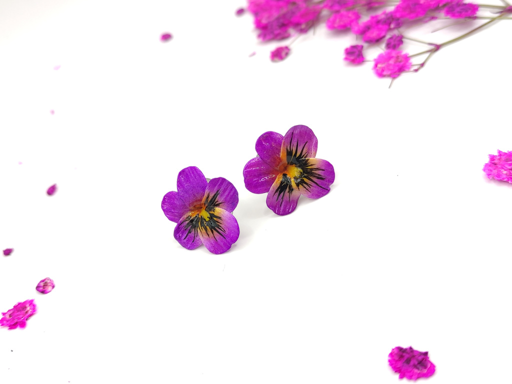 Ručně modelované náušnice z polymerové hmoty FIMO. Stínované suchými barvami. Dokresleno akrylovými barvami. Zalakováno. Komponenty jsou z chirurgické oceli.