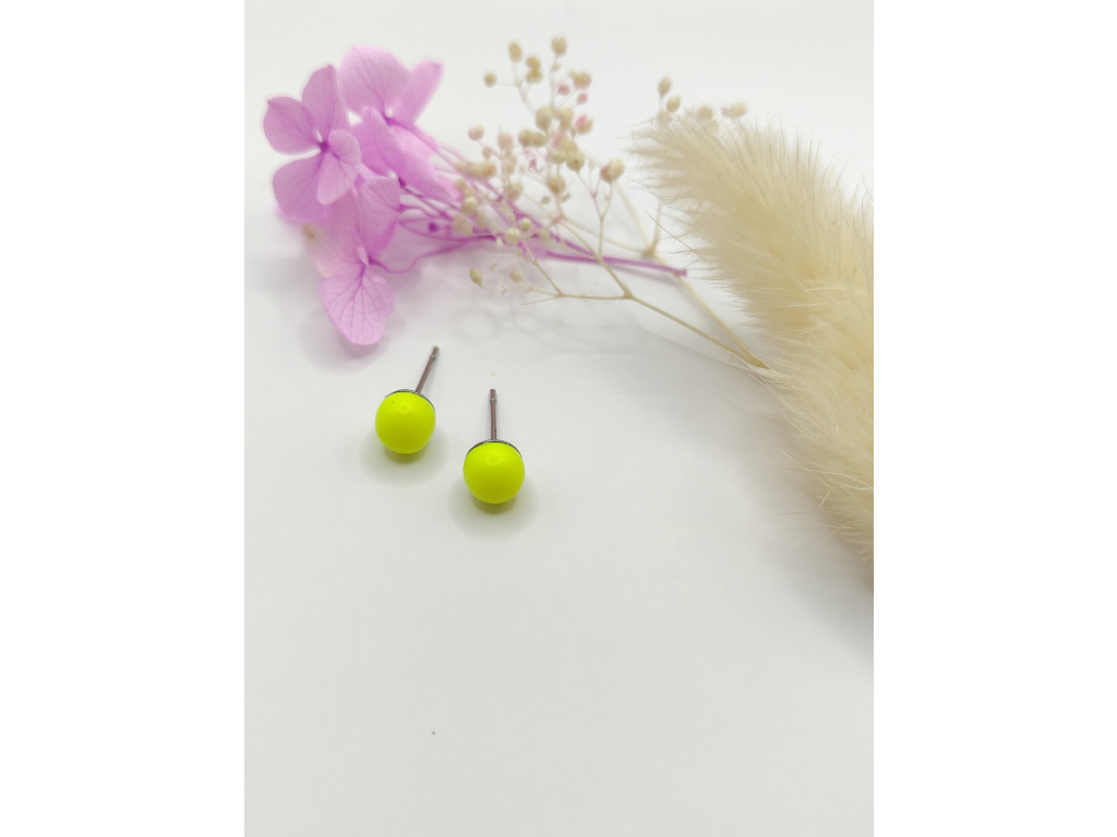 Drobné pecičky neonové žluté barvy, které můžete použít jako "hlavní" náušnice, nebo pokud máte druhou/třetí/,.. dírku tak do ní. Doladíte tak celkový vzhled ucha.