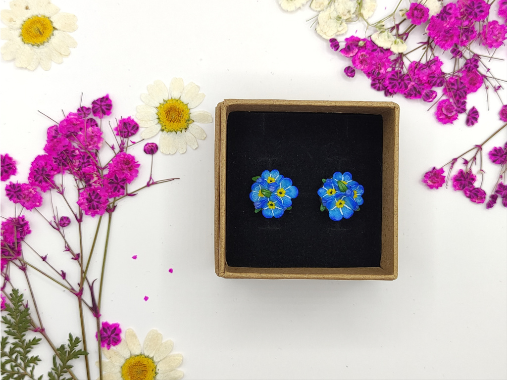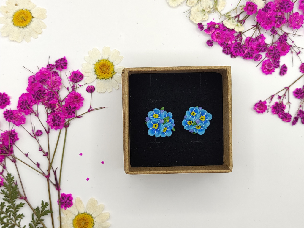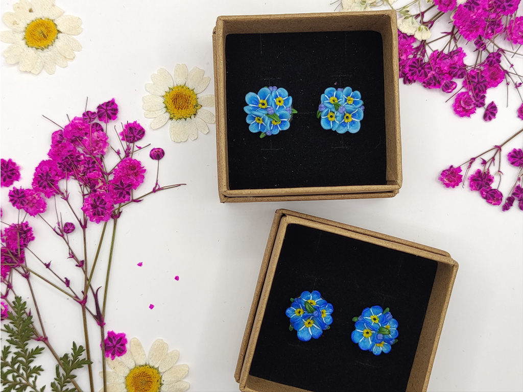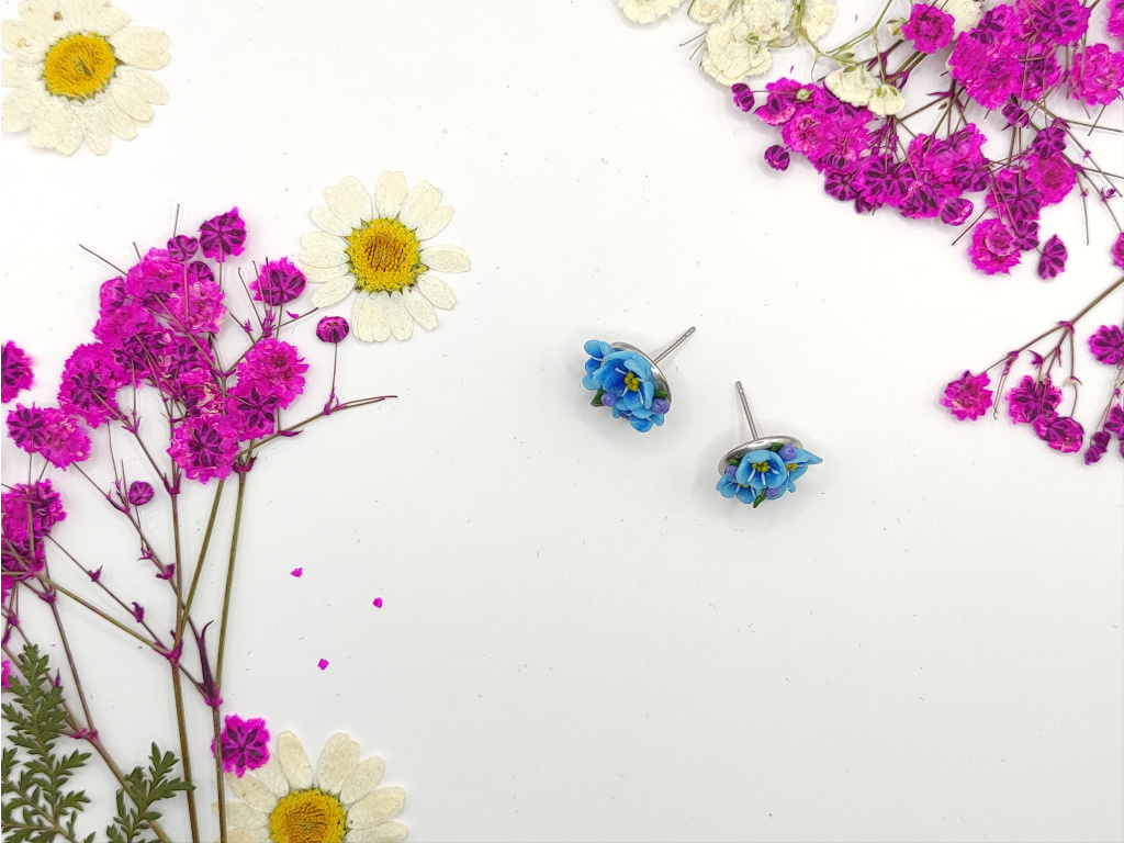 Ručně modelované náušnice z polymerové hmoty Fimo, komponenty jsou z chirurgické oceli.
