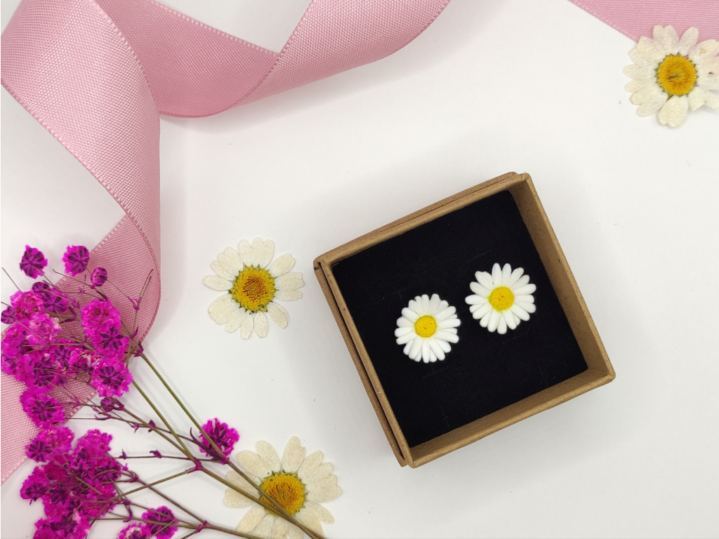 Ručně modelované náušnice z polymerové hmoty Fimo, komponenty jsou z chirurgické oceli. Zalakováno.