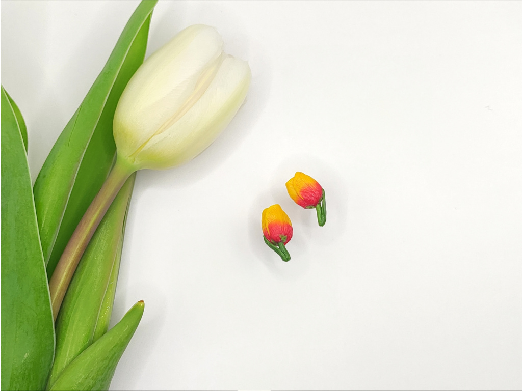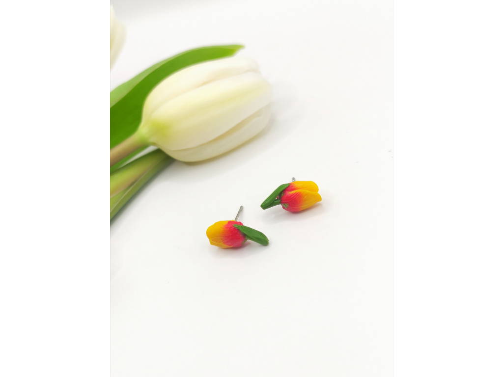 Tulipán a tulipaní, celý den se k sobě klaní,.. 🌷 ručně modelované náušnice z polymerové hmoty Fimo. Stonek vyztužený drátkem. Puzetka zapracována do hmoty, NENÍ lepená. 😊 Zalakováno.