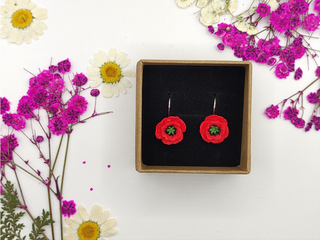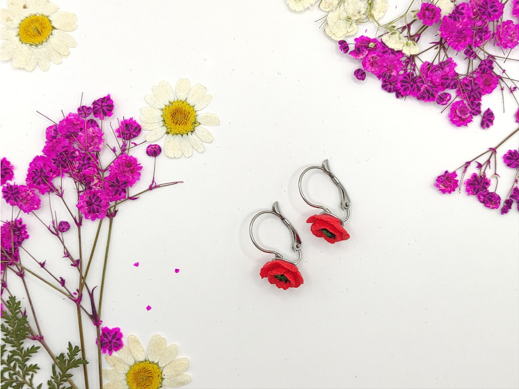 Ručně modelované náušnice z polymerové hmoty FIMO, komponenty jsou z chirurgické oceli.